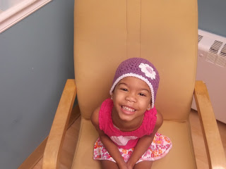 Mireya woke up today in a really good mood and ready to go to the clinic. I told her I hoped her upbeat mood was indicative of great things going on in her body. In-dica-what….the answer is YES. All counts are up today without growth meds. We are super excited. I’ve come to realize that appointments are going to require at least a 3 hour commitment and that is without having to do anything out of the ordinary. On occasion a variety of wonderful people donate things to the clinic for the children. This week Mireya picked out some really cute hats created by volunteers at ‘Halos of Hope’. In addition she received a “My Pet Butterfly”. One of the grandparents of a Hemocker coordinated the delivery of these cool gifts for the kids in clinic this week. There were lots of smiling faces as the kids watched their new ‘pets’ flying around in the jar. It’s really neat, but I will admit it has scared the life out of me on a few occasions randomly flapping and tapping around.
