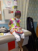 Our current schedule is at least three times a week for counts and any necessary treatments.  The appointments/days can last for hours.  After this week I feel like I should collect a paycheck for the hours clocked, but it’s definitely better than being in the hospital, so you take it all in stride.  We enjoyed birthday cake today in celebration of all the September Hemoc birthdays.  Special thanks to Cakes by Graham.  It was beautifully decorated and absolutely delicious.  We also had a special visit with Music Therapy while we waited. Mireya enjoyed playing the guitar, singing songs and banging on the hand drums.  She shared with me, she would like to take guitar lessons.  Strumming is great, but rocking out with a pic is Mireya’s preference. These programs and visits make the time ‘seem’ to go by quicker and always brings a smile to the face of the children.